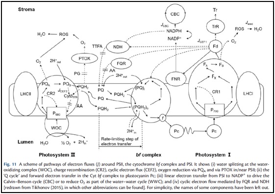 该团队利用了现代光合测定技术,结合优化的叶绿素荧光检测方法、P700氧化还原动力学及薄膜质谱仪,评估了植物在光诱导过程中电子流的组成和分配(Fig.11)。研究结果不但能估算出CEF,而且在生长光下能够估算出LEF。这对模拟活体植物叶片光合电子传递过程的微调控十分重要,而这个模拟过程对于探究环境变化下复杂网络响应中的一些过程是必要的,为评估动态光环境下植物的碳素积累以及生态碳汇过程提供技术支撑。由于东北林业大学生命科学学院孙广玉教授和澳大利亚国立大学Chow教授的密切合作,该成果2019年11月发表在《Plant Cell & Physiology》的文章被评为亮点论文。