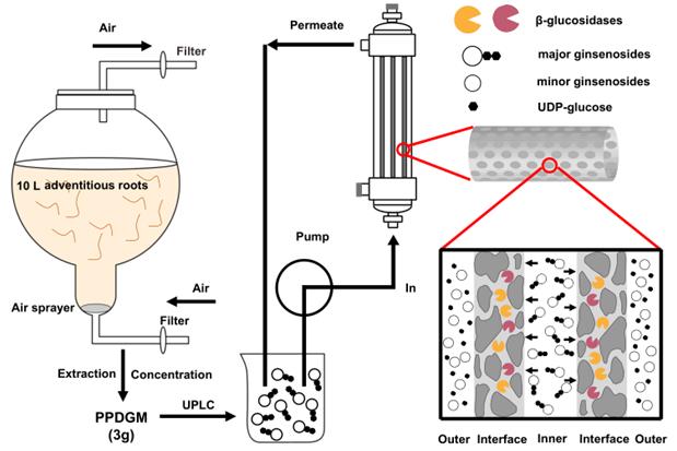 稀有人参皂苷具有抗肿瘤、抗炎症、提高免疫力等药用价值。由于野生人参皂苷含量低,稀有人参皂苷的来源极为有限,从而阻碍了它们在功能性食品和药物中的应用。东北林业大学李玉花教授团队开发了一种有效的组合生物技术方法,包括组织培养、固定化和水解方法来获得稀有人参皂苷。
