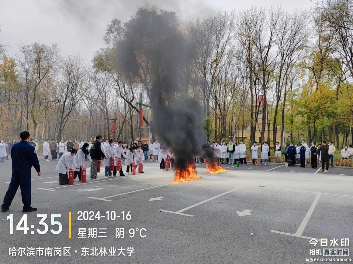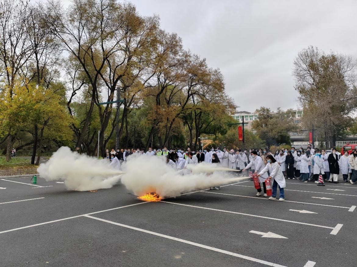 在演练开始前,祝胜男书记面向师生作了演练动员;保卫处消防科负责人王宇新老师向现场师生详细讲解了火灾逃生的注意事项,以及过滤式消防自救呼吸器和灭火器的使用方法。演练现场,保卫处工作人员精心布置了模拟火灾场景,营造出逼真的火灾氛围。演练过程中,参演师生组织有序,分批上前使用灭火器控制火势,表现出了良好的应急反应能力和团队协作精神。