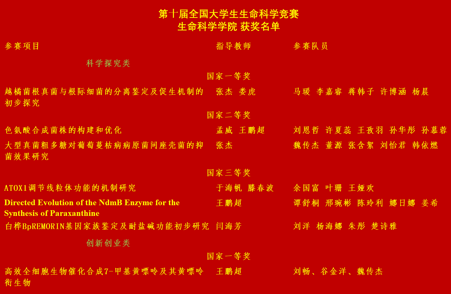 我校师生在第十届全国大学生生命科学竞赛中喜获佳绩