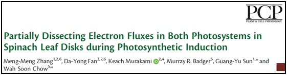 1. Meng-Meng Zhang,et al.Optimising the linear electron transport rate measured by chlorophyll a fluorescence to empirically match the gross rate of oxygen evolution in white light: towards improved estimation of the cyclic electron flux around photosystem I in leaves.Functional Plant Biology, 2018, 45:1138-1148.https://doi.org/10.1071/FP18039
