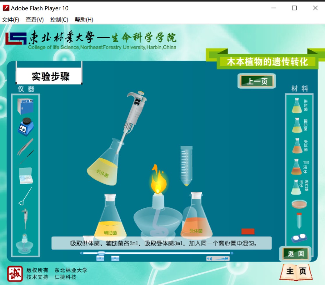 2016年获得校级教改项目的支持,利用Flash技术制作了基因工程虚拟仿真实验,包括两个模块十个实验项目,学生可以随时观看实验内容并操作练习,掌握实验操作技术。该课程与理论课一起于2017年依托超星学习通平台建立了在线开放课程(https://mooc1-1.chaoxing.com/course/87940225.html。采用互联网+和实验室实际操作相结合的教学模式,受到学生的好评。发表相应教改文章1篇。2020年与理论课一起获得省级教学质量成果二等奖。主要授课教师为:齐凤慧,尹静。